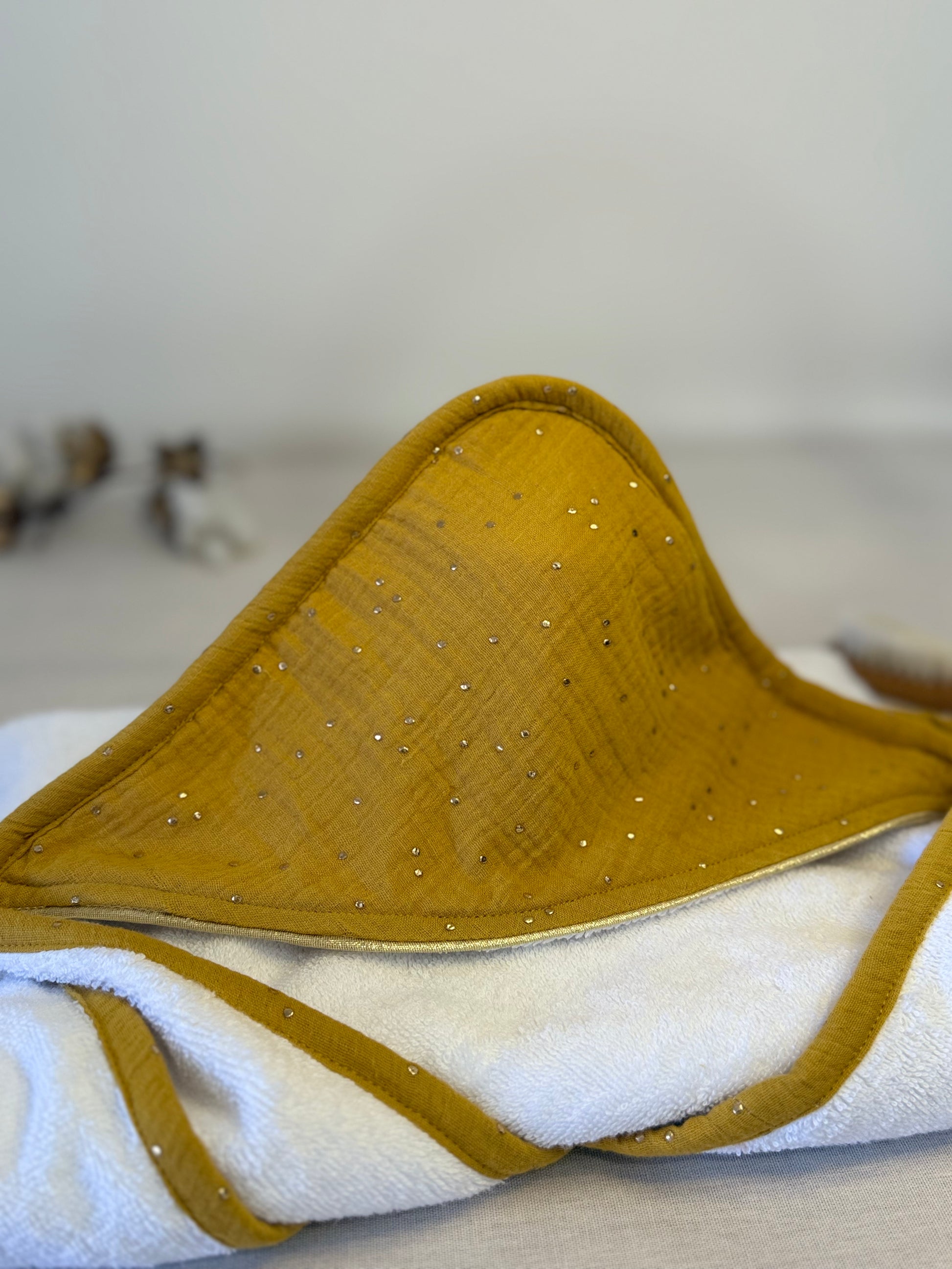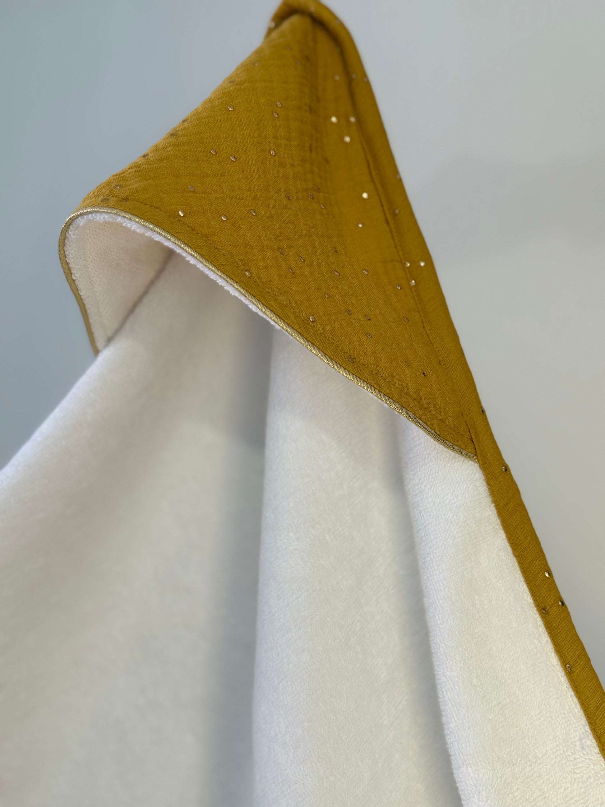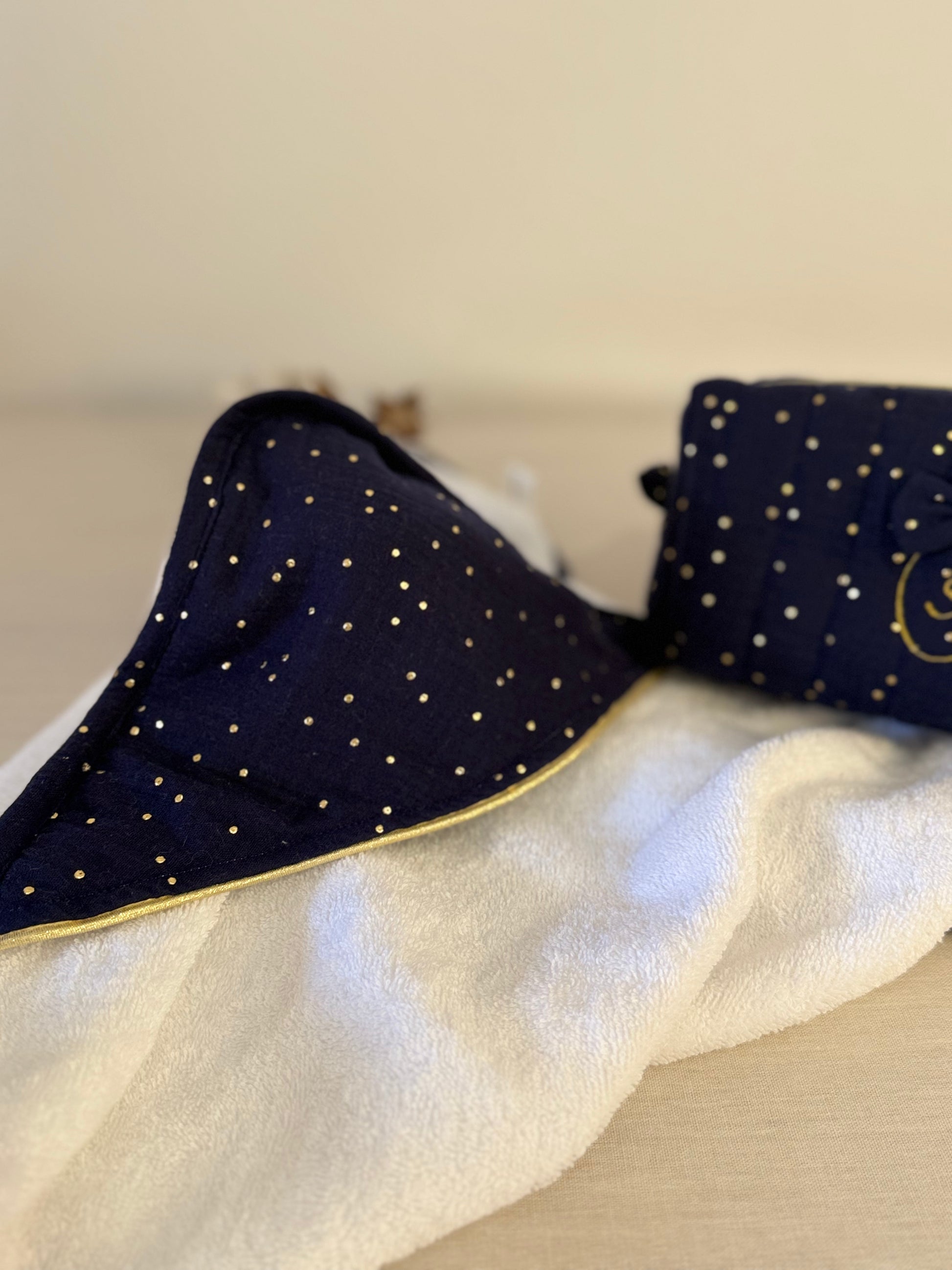Ajoutez une touche de douceur au carnet de santé de votre enfant avec ce protège carnet délicat et résistant. Cousu en double gaze et orné de pois dorés, il protège efficacement tout en restant élégant.