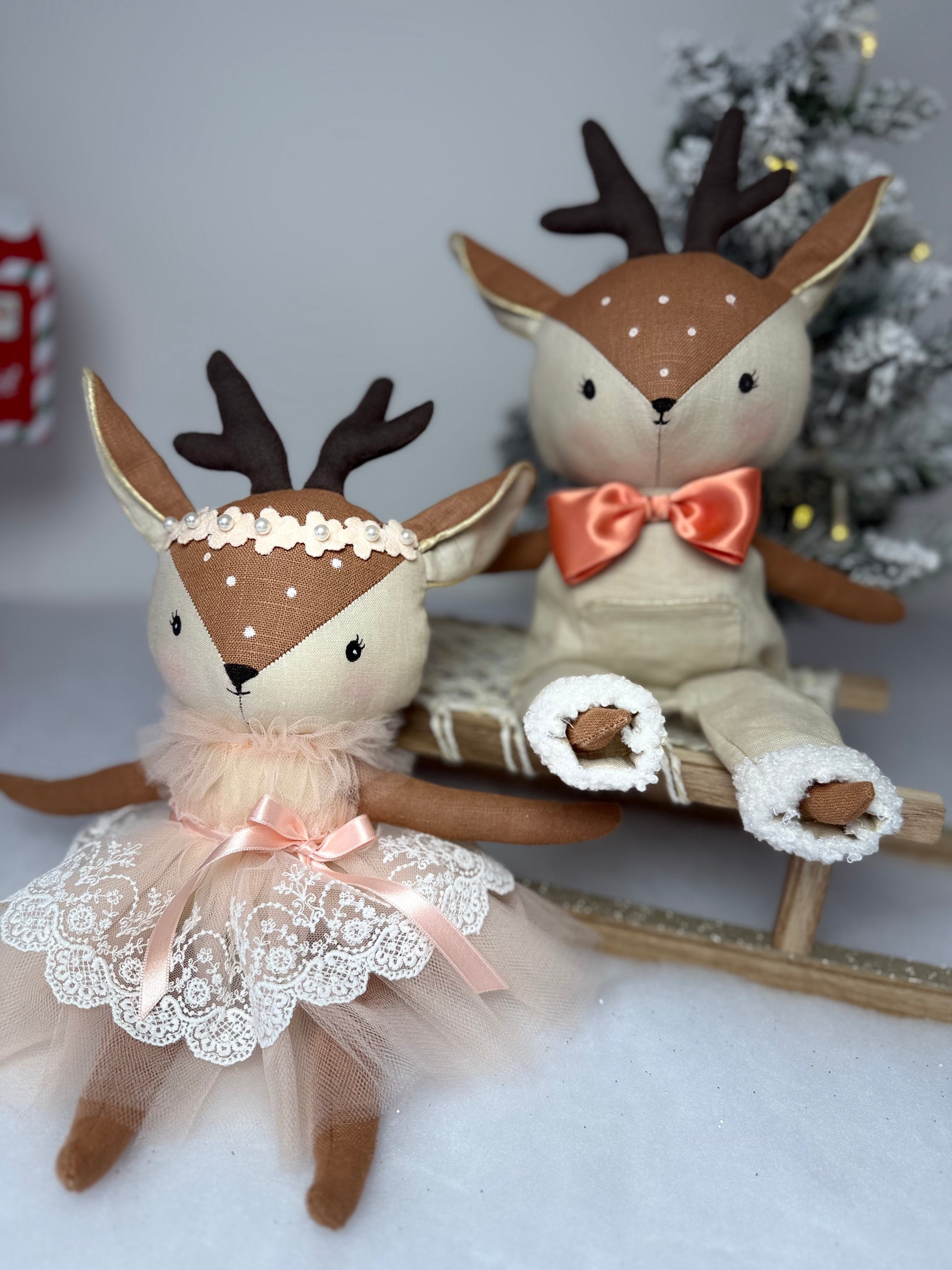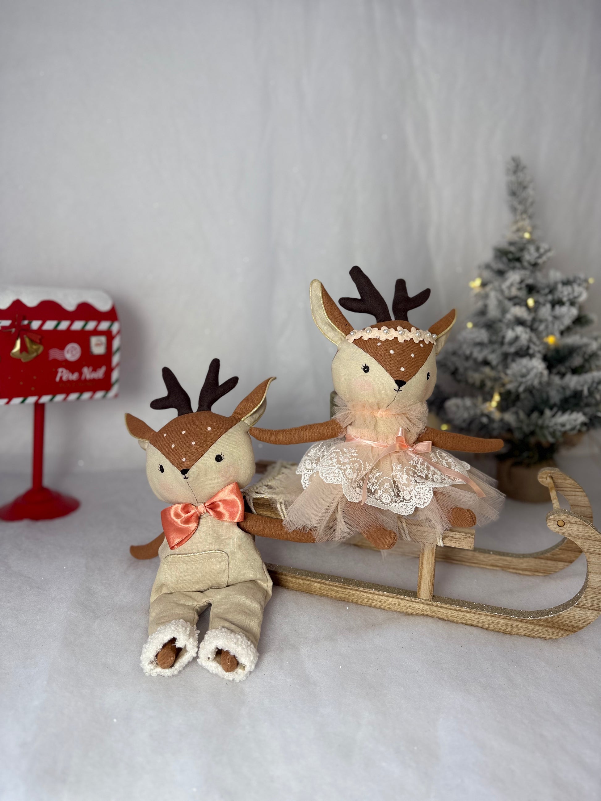 Découvrez notre délicate fratrie renne, réalisée entièrement à la main dans mon atelier. Cette paire, au style scandinave élégant, se compose d'un frère et d'une sœur prêts à apporter douceur et poésie à votre Noël.